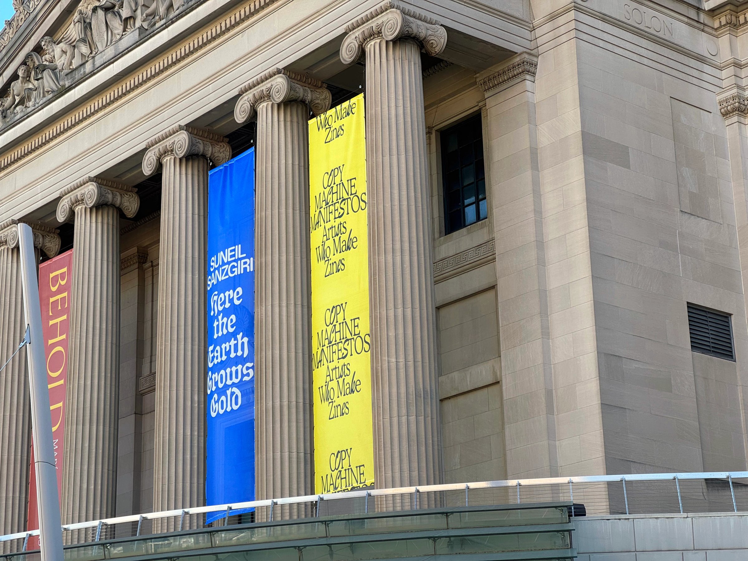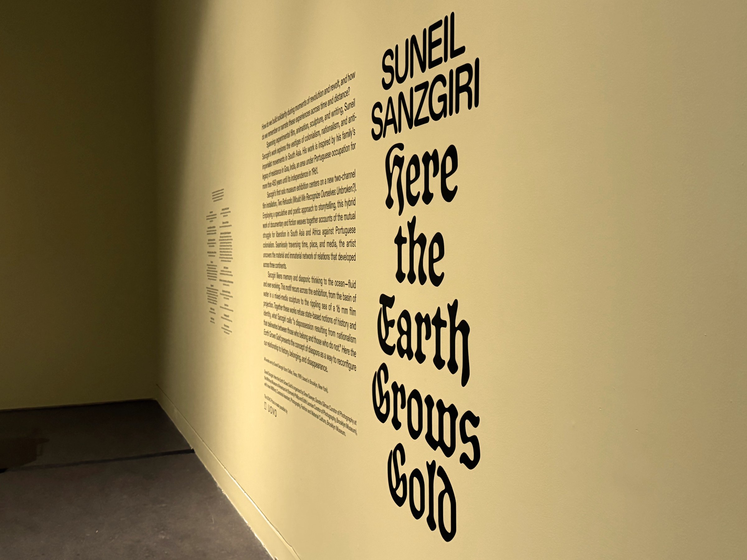 Referencing Suneil Sanzgiri’s works’ relationship with water and use of challenging and sometimes archaic letterforms, the unconventional and typographic visual identity for the filmmaker/visual artist’s first solo museum exhibition extends throughout the space and didactics, as well as to an accompanying essay booklet.